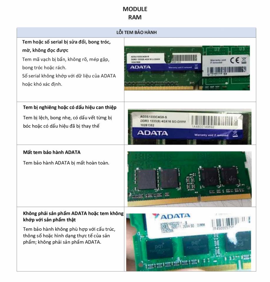 Chúng tôi cam kết phân phối các sản phẩm chính hãng Adata và thực hiện đúng theo chính sách bảo hành sản phẩm của Adata cụ thể như sau: