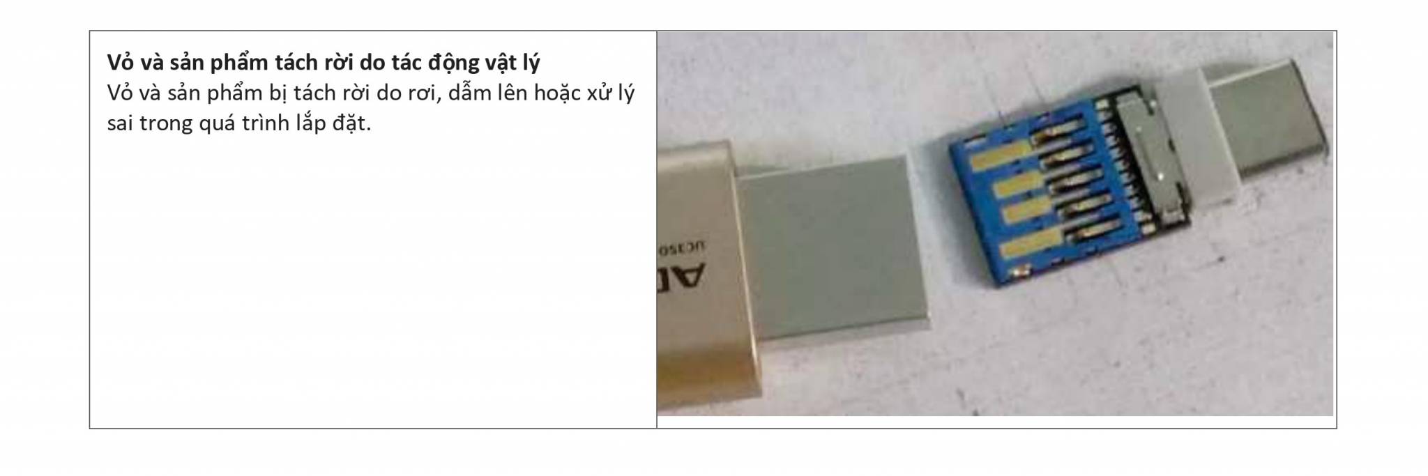 Chính sách bảo hành này không áp dụng cho các lỗi hoặc hư hỏng của sản phẩm xuất phát từ yếu tố con người hoặc các nguyên nhân không phải do sử dụng thông thường, bao gồm nhưng không giới hạn ở: